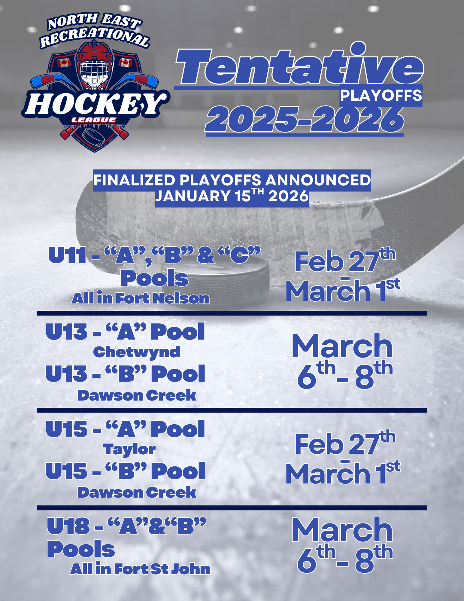 NERHL Executive may alter tentatively scheduled playoffs up to and including the 15th of January